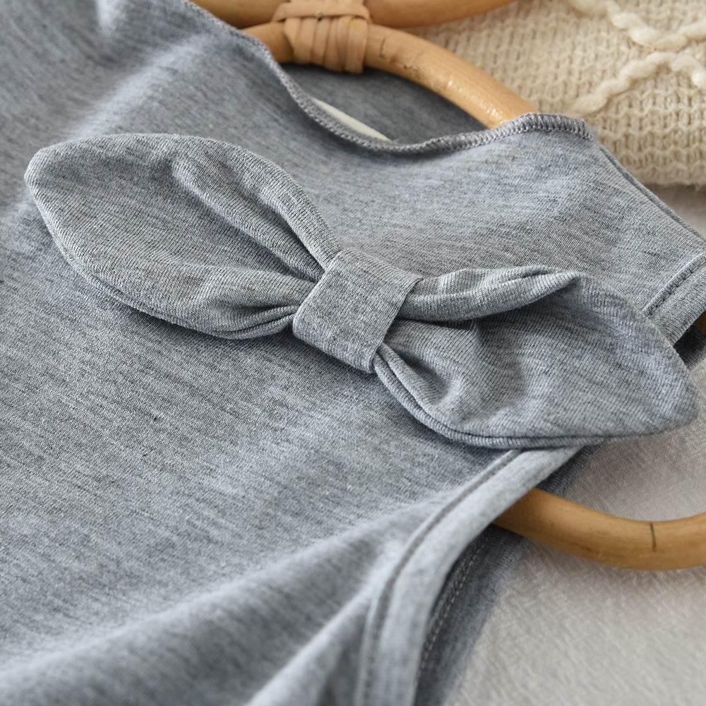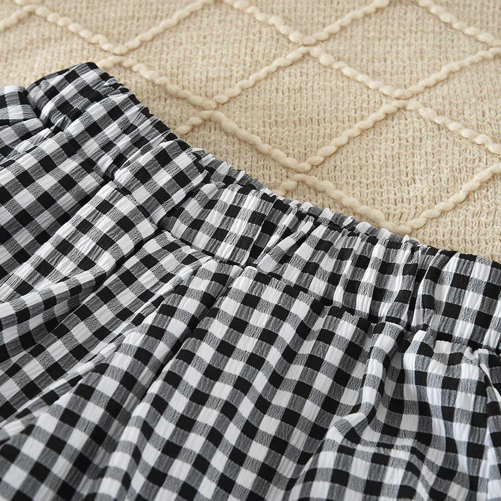 Cute Bow Sleeveless T-shirt+Plaid Shorts Girls' Lovely Outfit