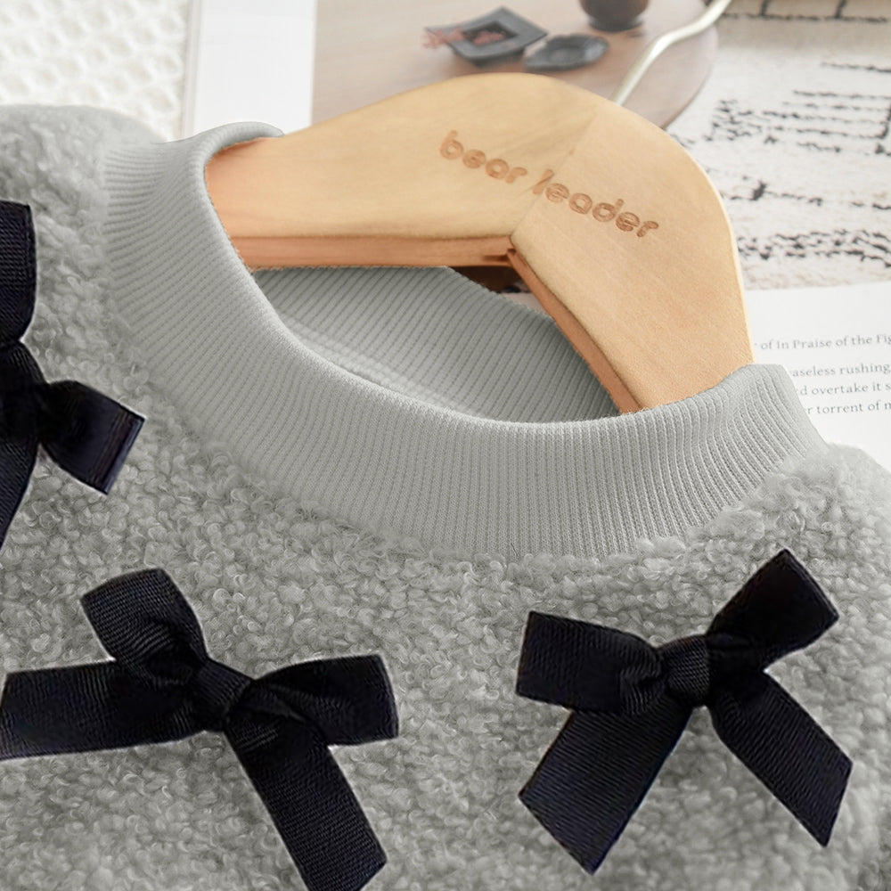 Girls' Bow Fluffy Top+Skirt 2pcs Casual Set