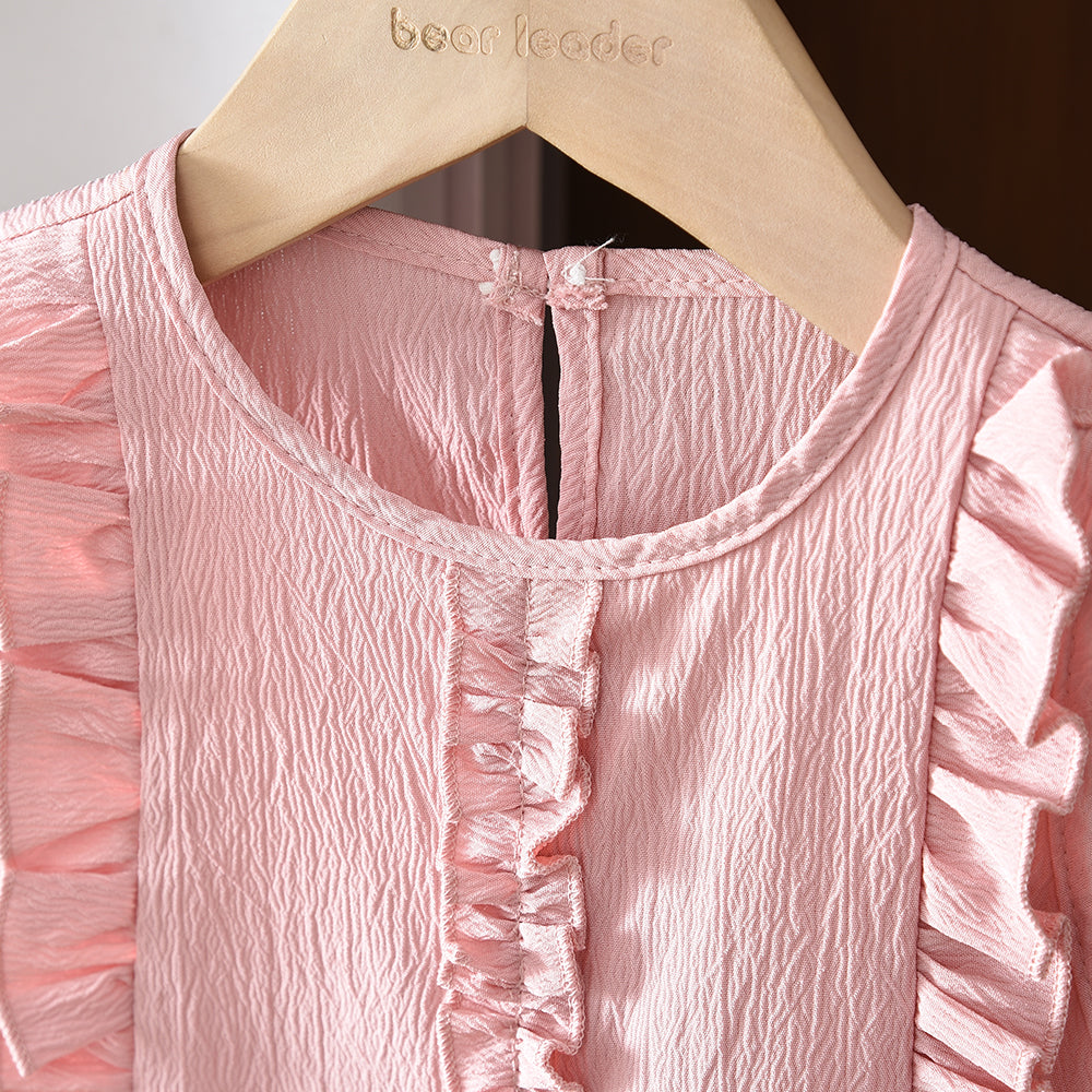 Lettuce Trim Sleeveless Shirt+Shorts 2pcs Girls' Summer Casual Set