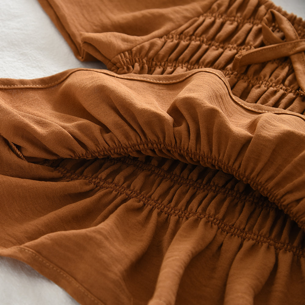 Bow Wrinkle Short Sleeve Shirt+Ruffle Shorts Girls' Cute Set