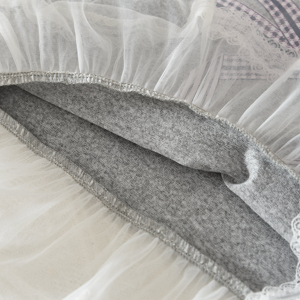Cartoon Bow Prints Lace Vest+Plaid Pants 2pcs Girls' Set
