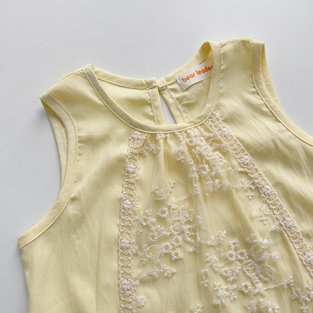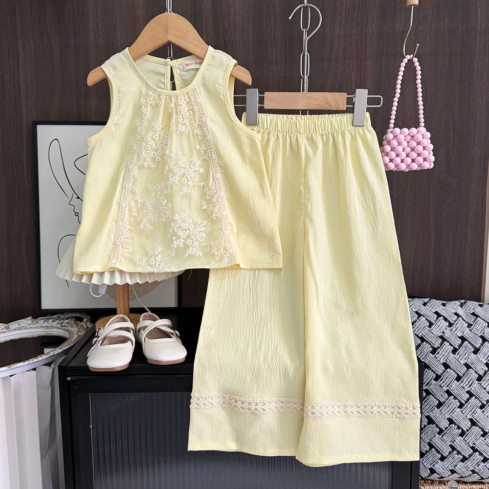 Floral Lace Vest+Wide Leg Pants Elegant Girls' Set