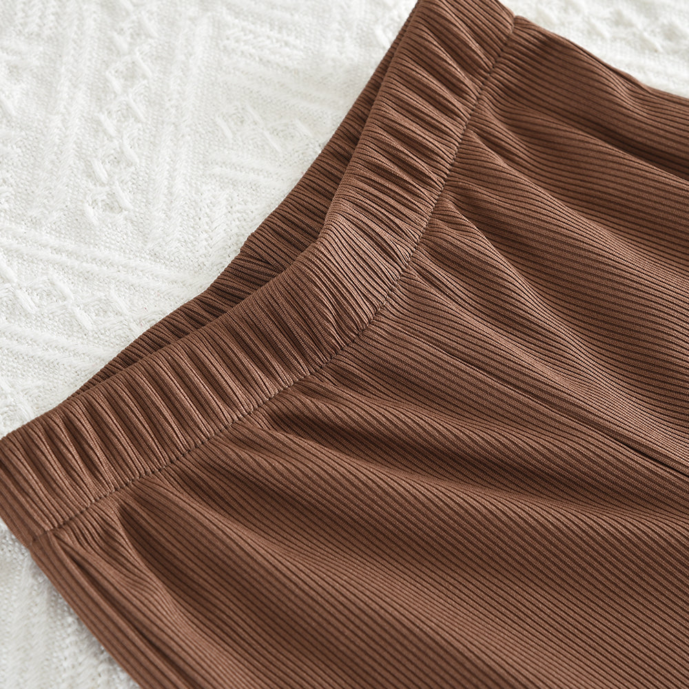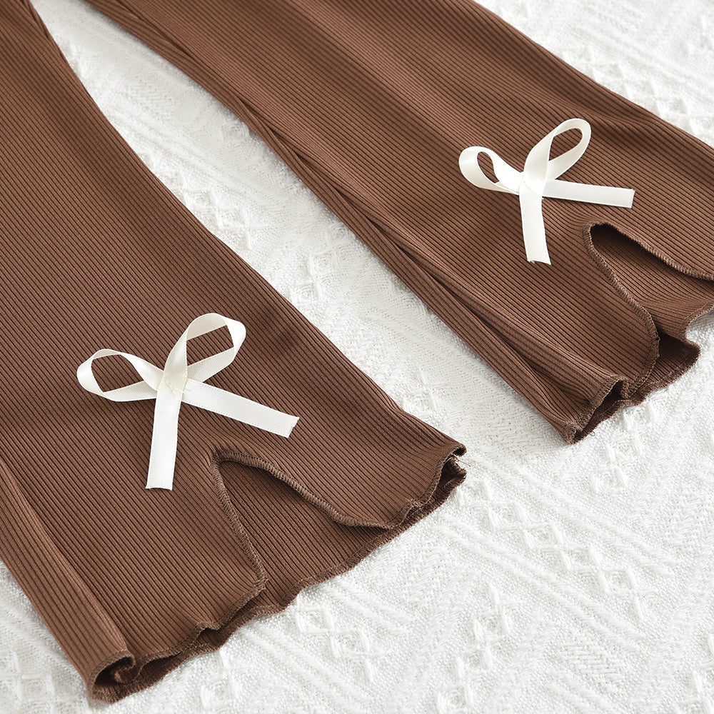 Girls' Lapel Stripes Long Sleeve Top+Flared Trousers Cute Set