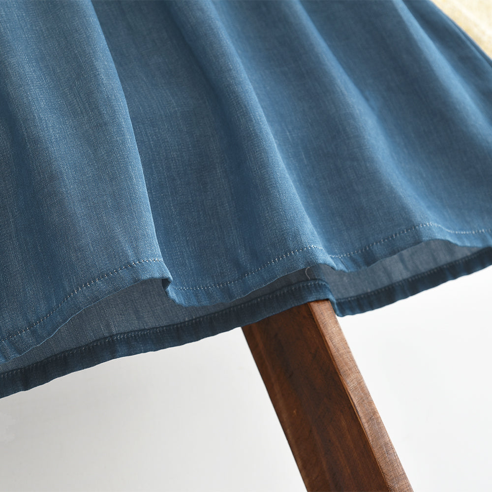 Girls' Long Sleeve Jean Blue Floral Embroidery Dress