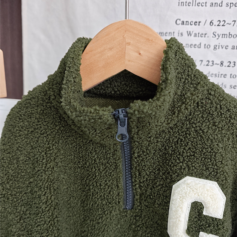 Letter Half Zip Top+Sweatpants Girls'&Boys Sports Set