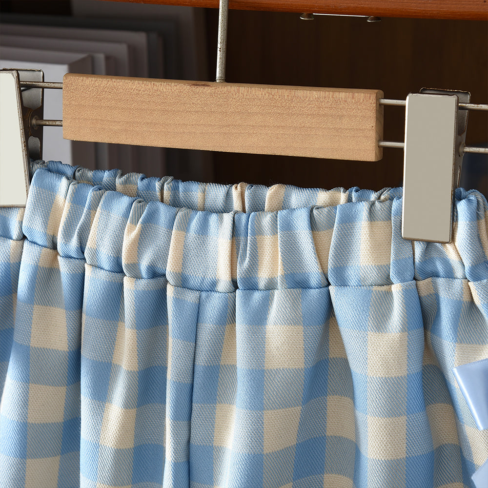 Girls' Long Sleeve T-shirt Plaid Lantern Pants+Free Bag 3pcs Set