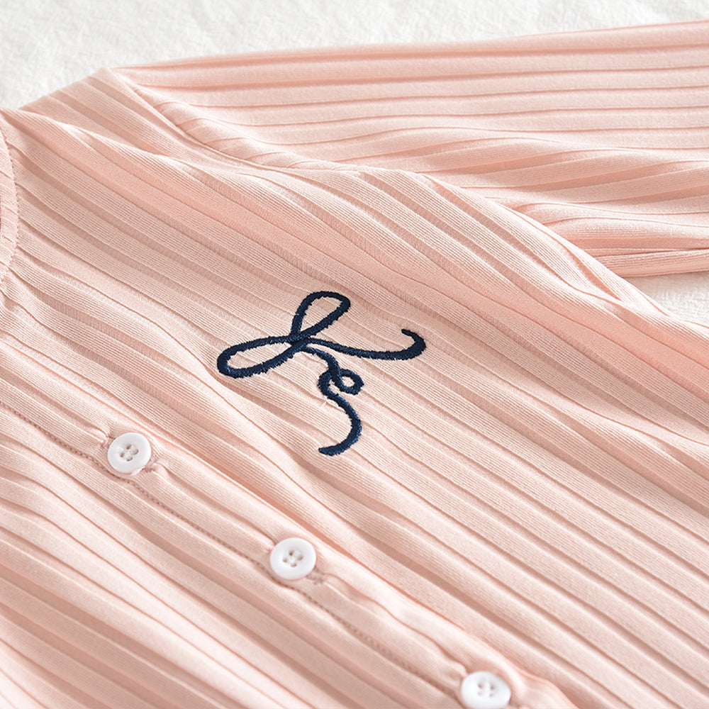 Girls' Ribbed Cardigan+Trousers Cute Baby Pajamas Set