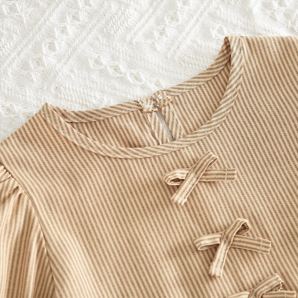 Details: stripes, bow, ruffle